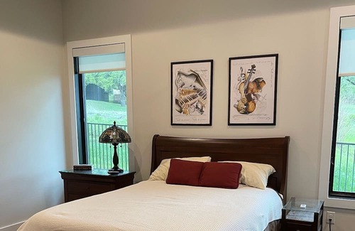 Get ready to relax in this 3-bedroom house in Spicewood. This charming property offers a cozy modern atmosphere that will make guests feel right at home. With 2 queen beds and a sofa bed, there is plenty of space for everyone to unwind. The bathroom amenities include a jetted bathtub and three walk in showers. We even have a built in EV charger in the garage for your electric car! Kickback, relax, and enjoy everything Spicewood and our house has to offer. You'll be staying in a peaceful and quiet neighborhood nestled in the serene views of the hill country..