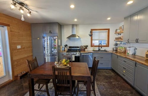 our home features open concept living and dining area, wood burning fireplace, loft style bedroom with pull out queen sofa bed and 2nd bedroom on main with double/twin bunk beds we also have a third bedroom with twin loft bed for those with kids!