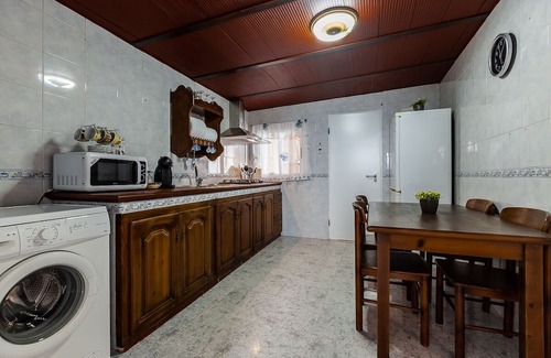 cocina: fogones, nevera, cafetera, exprimidor, tostador, batidora, lavadora, menaje, microondas, hervidor eléctrico( solicitar propietario)