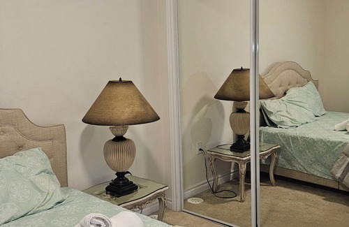 You'll fall in love with this charming 2-bedroom condo townhouse, complete with two complimentary parking spots right on-site. Conveniently located near the highway, it offers easy access to everything you need. Enjoy the entire house to yourself, including a refreshing balcony where you can take in the fresh air. Unwind with the smart TV, free Wi-Fi, and a Netflix subscription. For your convenience, there's an in-house washer and dryer, and the fully equipped kitchen is ready for all your culinary adventures..