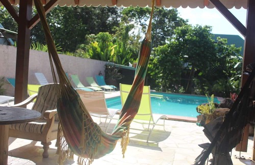 between deshaies and ste rose, you will spend your holiday in an idyllic setting in a tropical garden raised by us, the garden fruits are available (depending on season), a privileged place of peace and rest for lovers nature