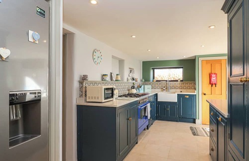 amenities: gas central heating with underfloor heating downstairs Oven, gas hob, Air Fryer, Coffee Machine, microwave, fridge, washing machine, dishwasher. WiFi, Alexa, books. Fuel, power, and starter pack for woodburning stove inc. in rent. Bed linen and towels inc. in rent. Private, off-road parking for 2 cars. Property has 2 bikes for us. Rear garden with lawn, patio, and furniture. BBQ. Front garden. Sorry, no pets and no smoking. Shop 0.5 miles, pub 1.8 miles, river 0.6 miles. Property is 2 minutes walk from a nearby park and playing fields. please note: