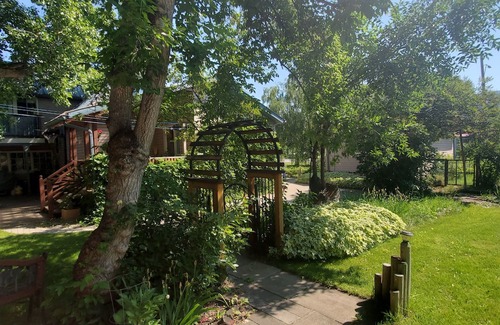 the garden suite is a bachelor style suite with a walk-in shower bathroom, queen bed, and small kitchenette It is attached to the main house but has no interior access to the house. we hope you are able to come and relax in this beautiful space and take advantage of the spacious garden yard finding a spot to read perhaps, or playing games in the gazebo when the weather is warmer!