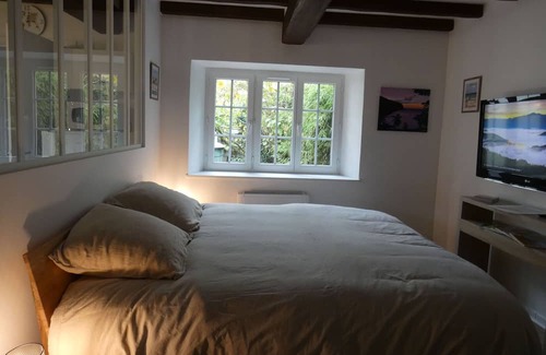 In the heart of the Avre valley halfway between Chartres and Evreux and just 1 hour from Paris and 1 hour 15 minutes from Honfleur, La Berceuse Normande welcomes you in the calm of the countryside. Located opposite the owners' house, this gîte can accommodate up to 4 people. You can enjoy the private spa and share the garden with the owners. (For reasons of energy conservation during this winter, the SPA will not be available from October 15, 2023 to April 30, 2024.... Departure of hiking trails (GR22) from the gîte. Gite composed on the ground floor: Kitchen with electric hob, microwave/combination oven, fridge, coffee maker (Dolce Gusto), toaster. Bathroom Bedroom open to the kitchen with 160*200 bed, Smart TV Upstairs : Bedroom with 90*190 trundle bed, TV, video game console Private terrace with spa Shared garden with swing, trampoline, basketball hoop Private parking space Property managed by a professional. Unless stated, services such as cleaning, bed linen, towels etc. are not included in the price of this rental. If pets are allowed (information in the advertisement), charges may be applicable. Only equipment mentioned in this advertisement are present. Equipment not mentioned are not considered to be present.