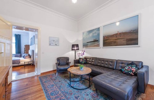 Nestled in the heart of Berlin's vibrant Friedrichshain district, our spacious 120 square meter apartment is your ideal home away from home. Boasting three tastefully decorated bedrooms and a multifunctional living room that effortlessly transforms into an additional sleeping space, it caters effortlessly to large groups and families. Whether you're whipping up a meal in the well-equipped kitchen or unwinding in one of the two modern bathrooms after a long day of exploration, you'll find plenty of room to relax, rejuvenate, and reconnect. Elegance meets comfort in every corner, ensuring every guest feels pampered.