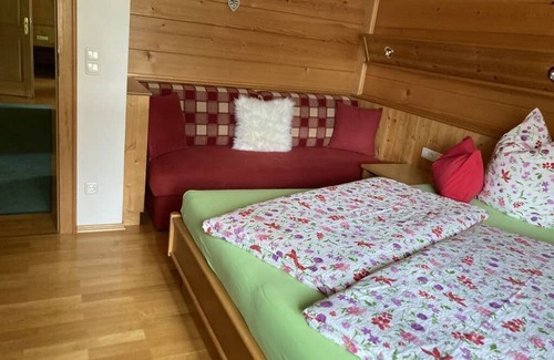 our house was built in 2004/05 from local wood and offers a very pleasant indoor climate This is supported by our underfloor heating, which is powered by wood chips and solar and operates all year round. The holiday apartment offers enough space for 4 people and has 2 bedrooms, 1 living room, 1 kitchen and 1 bathroom. If you need a second bathroom, we can offer you an additional room with a separate bathroom. There are also 2 sleeping options there.