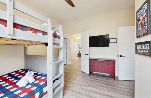 perched amongst davenport's waterways, this updated home boasts an abundance of family fun! with something for everyone, this five-bedroom charmer boasts vintage arcade systems, a giant board game collection, a heated pool, and a pool spa When you aren't splashing in the invigorating water of the private pool, gather around the patio's dining table for a memorable alfresco meal.