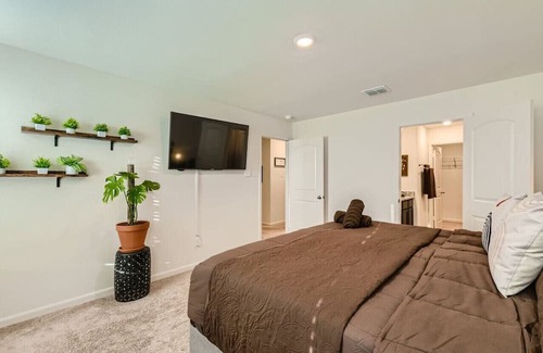 revel in our master bedroom space featuring a king-sized purple brand premium mattress, set with soft, high-quality linens for the utmost comfort and a smart tv with streaming capabilities situated for your viewing pleasure We offer versatile sleeping arrangements to comfortably accommodate an extra guest. Tucked away in the spacious closet, you'll find a convenient Twin XL foldable bed. This bed can be easily unfolded, providing a cozy and restful sleeping space without compromising the room's main area. It’s an ideal option for those seeking additional privacy or simply an extra bed in a pinch.