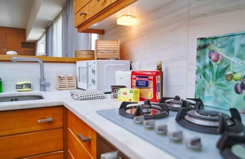 where a house becomes a home Nicely, homey decorated with the Parthenon view follow the guest to every step in the living room as from its wide windows one can see Acropolis at any time of day, even lying on the comofrtable double bed. Enjoy the privilege of staying in the heart of Athens' center and yet being in a tranquil environemnet with a fully green, spacious balcony on the 5th floor, which gived the impression of one being on the country side. Pamper yourself in the jakuzzi bathtub & use the 50mbps unlimited connection for work from the desk or watching your favorite program in the smart TV.
