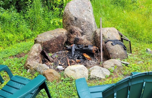 plenty of flat ground to set-up a tent or park your vehicle Grid electricity on site. There is 1 acre of cleared land (8 acres total) with electrical hook-up, one is standard and one is for a roof top- camper. There is wifi available and an Outhouse on site. We offer a metal roof canopy with a patio and grill. The canopy area has a picnic table and is a perfect place to hang out. Don't forget the firepit with free firewood! A quarter of a mile up the road is Half Moon Pond, where you can fish and swim..
