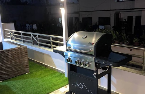 guests have exclusive access to the studio apartment, as well as shared access to a covered terrace, dining area, and barbecue patio Enjoy a peaceful, smoke-free indoor environment while taking in the vibrant Kathmandu skyline from the terrace.