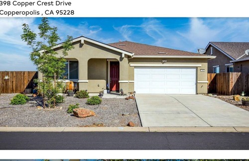 Welcome home! Copper Hills Subdivision. Minutes from the brand new Chicken Ranch casino. Lake Tulloch Viewpoint is only 5 minutes away! The Bocce Ball park is the perfect place to take a stroll and play a leisure game. This home is perfect for a full weekend getaway. Come and enjoy the peace of Copperopolis-.