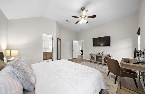 Discover the perfect blend of convenience and comfort in our 3-bedroom, 2-bath Tomball retreat. With two dedicated work desks and 1200 Gbps internet speed, it's an ideal space for remote work, accommodating a family of four with ease. Entertain in style with our full outdoor kitchen and bar, perfect for gatherings. Our smart home features keyless entry, a smart garage, 3 smart TVs, and a Nest thermostat, ensuring a tech-savvy stay. Enjoy the safety of our neighborhood, complete with parks and a community pool. For added peace of mind, we're just a few miles from several hospitals, providing easy access to medical facilities for our medical professionals. Additionally, being part of A-rated Tomball ISD, one of Texas's top school districts, adds an extra layer of reassurance to your stay. Book now and experience the convenience, safety, and comfort of our Tomball retreat – where modern amenities and accessibility to hospitals meet to create a truly exceptional stay..