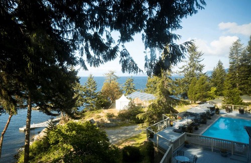 the rockwater secret cove resort is an iconic destination in halfmoon bay, british columbia Nestled into a cliff overlooking the Strait of Georgia, Rockwater provides a tranquil paradise at the intersection of ocean and forest. The resort features tree-top boardwalks, expansive lawns, and stunning ocean views, creating an unforgettable backdrop for every retreat, special event, and weekend getaway.