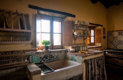 ground floor the right wing is 260 sq mt (7 people) a characteristic kitchen of the florentine restart firm with 9 burners and 2 ovens; small microwave, freezer, dishwasher, toaster, american coffee machine, mixer and boiler Dining table for 8 people.The two big kitchens of the villa are equipped for cooking with friends and all the family or for the unique experience of a cooking class with a typical Tuscan “mamma”. Details :External space, with access from the kitchen, with a big table, perfect corner, to have a relaxing breakfast; access to a lounge room with satellite TV and a functional fireplace, warm and romantic lounge with original colored walls. This room, called the blue room, has a private bathroom with a large shower and direct access to the pool; comfortable divans and two beautiful arm chairs. The Tuscan terracotta gives this large area a classic, traditional Tuscan atmosphere. Dining area, 15 people. Access to the patio with iron and wooden table for 4 people and a divan for 2. Double bedroom with access to the outside, ensuite bathroom with large double shower and access to the covered swimming pool. Second double bedroom with bathroom ensuite and large double shower and access to the outside near the kitchen well. First FloorThe right wing Large double bedroom with a canopied bed, 2 x 2 mts, bathroom ensuite with hydromassage with view. Second large double bedroom with ensuite bathroom and functional fireplace. Villa Privata is not only a comfortable and modern house but also a piece of Tuscan style living; wooden floors, beams, cotto, stone…..and much more. It is not only a villa, but a unique experience in one of the most beautiful and unforgettable parts of the world.